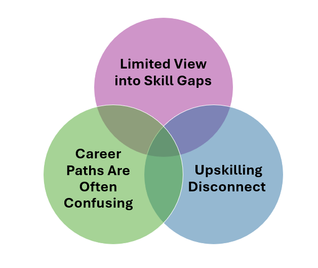 Many businesses know internal mobility matters, but their upskilling efforts often don’t match what employees actually need. People who want to move into new roles can’t always see which skills matter most. So when an opportunity appears, the person who could have taken it isn’t ready—not because they lack potential, but because the learning they received wasn’t tied to real roles.